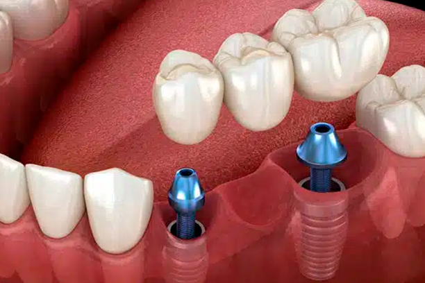 Substituem a raiz do dente perdido com um pino de titânio fixado no osso.